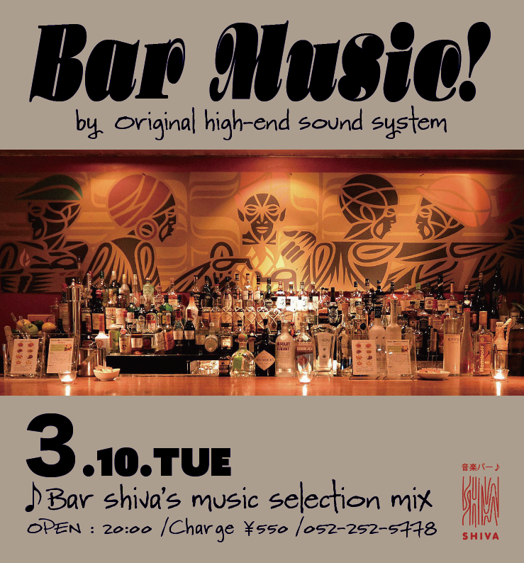 BAR SHIVA MUSIC♪ 3月 10 Tue 2026 BAR SHIVA ♪ ALL MIX INFORMATION DATE 2026.3.10 OPEN 20:00 VENUE BAR SHIVA CHARGE ¥550:乾き物FREE MUSIC SELECTOR SHIVA SELECTION PREV NEXT