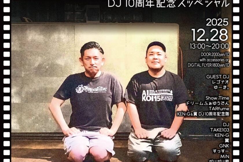 アイドルポップスオンリーDJ パーティ「アイドルに恋して」レギュラーのKEN-Gと翼のDJデビュー10周年を記念してスッペシャルなゲストを迎え時間拡大バージョンでお届けします!