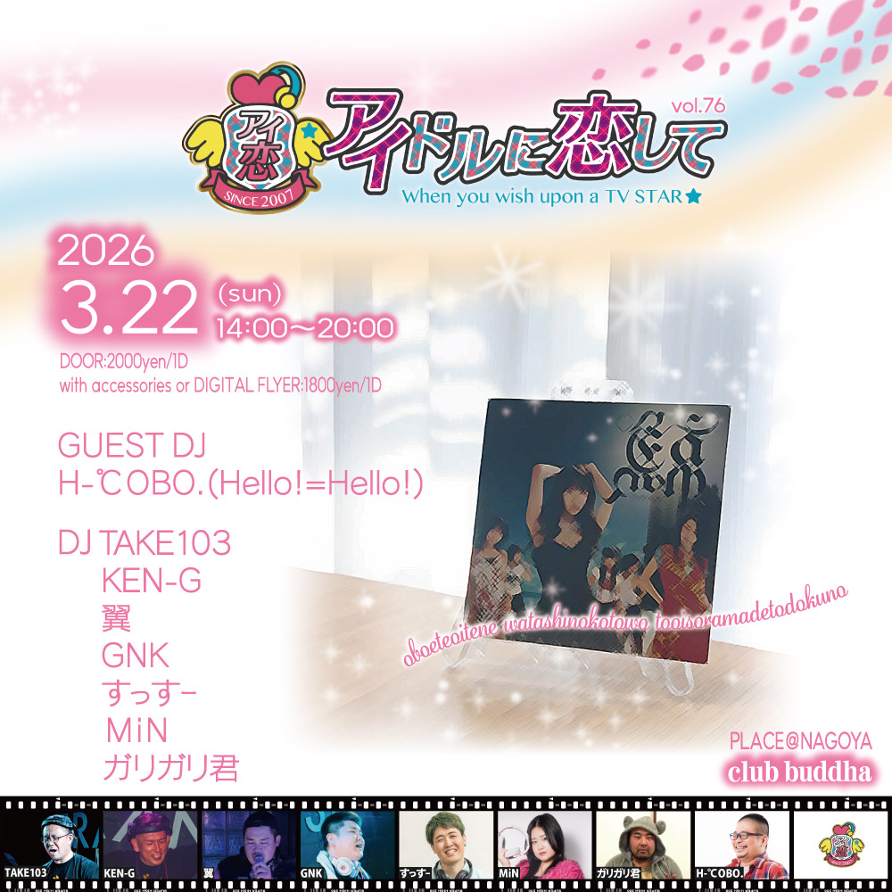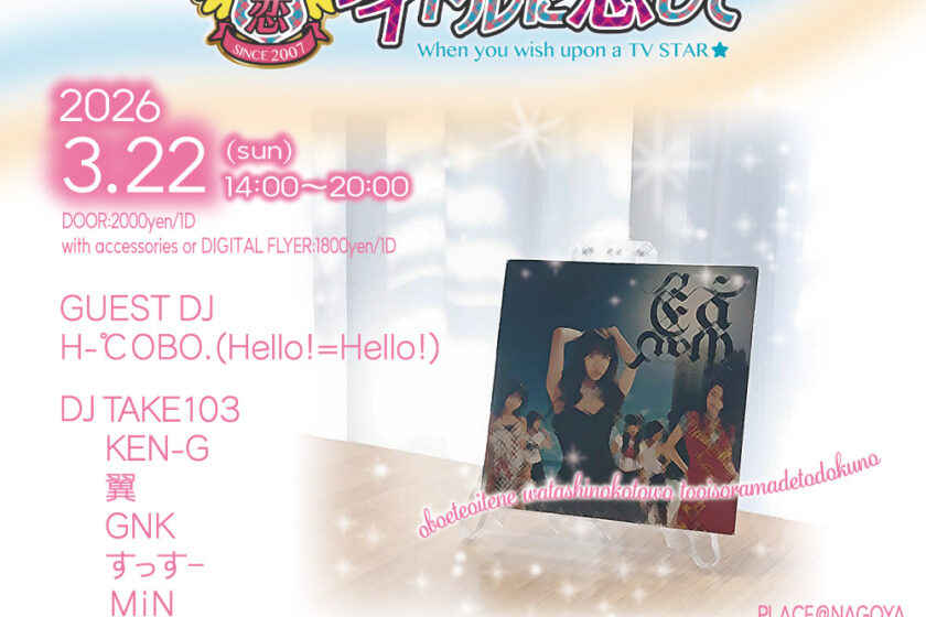 アイドルポップスオンリーDJ パーティ「アイドルに恋して」ゲストDJにH-℃OBO.(Hello!=Hello!)を迎えての春アイ恋!出逢ったり別れたり~新たな旅立ちに春色のエアメールを♪春のアイドルソング満載でお届けします!