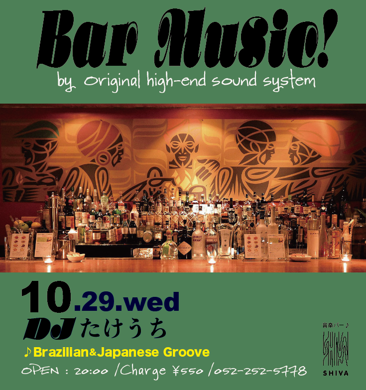 BAR MUSIC by たけうち 10月 29 Wed 2025 BAR SHIVA ♪ Brazilian&Japanese Groove INFORMATION DATE 2025.10.29 OPEN 20:00 VENUE BAR SHIVA CHARGE ¥550:乾き物FREE MUSIC SELECTOR DJ : たけうち PREV NEXT